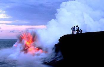 (B)Kilauea火山口夜游,只有夜晚才可看到独特的红光火山奇景。