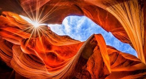 羚羊彩穴:世界七大地质摄影奇景之一。百万年来,经由河道变窄,洪流,大风及湍急的河水冲刷石壁,加上自然界的风化和侵蚀,最终形成了这举世无双的狭缝型峡谷奇观。其岩壁柔美温和犹如凝固的海浪,岩石涵盖的矿物质在光线的照射下呈现多重色彩,犹如绚丽的油画,令人无不感叹大自然的鬼斧神工和奇幻奥妙。