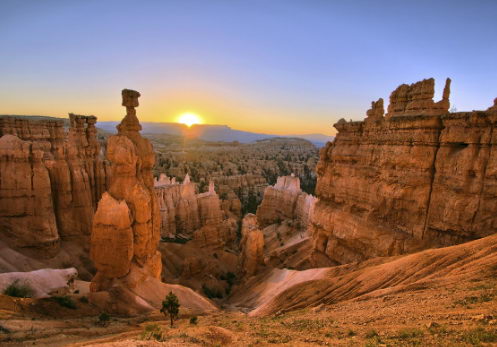 布莱斯峡谷:海拔八千尺高的布莱斯峡谷国家公园,以其举世罕见的风华岩柱而闻名于世。其层层叠叠的岩柱林,楚楚树立,气势磅礴,也被称为上帝的斗兽场,吸引着世界各地的地质爱好者慕名前往。
