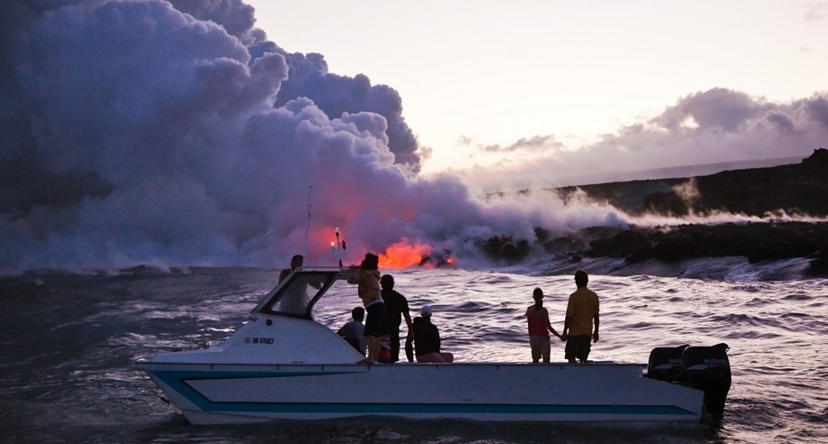 (B)Kilauea火山口夜游,只有夜晚才可看到独特的红光火山奇景。