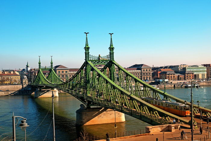 早餐於酒店后,前往匈牙利首都布达佩斯,抵达后游览这个被多瑙河分割为二的城市,河之西岸称为布达,东岸称为佩斯,布达佩斯素有多瑙河上明珠东欧巴黎的美誉,游览名胜包括庆祝建国及纪念马札尔族人联盟之英雄广场,欣赏千年纪念碑、马札尔酋长雕像、国会大厦、伊莉莎伯大桥、渔夫城堡、歷代匈牙利国王加冕的马提亚教堂、从堡垒山的解放纪念碑俯瞰布达佩斯全景;晚住宿於布达佩斯。