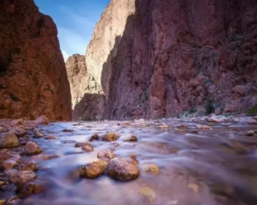 酒店早餐后全天赶路驱车前往梅祖卡,途经【托德拉峡谷】,河谷底部的河床上青翠的柳树、花草、及各种树木在微风中摇摆,一片自然风光,美不胜收。而峡谷四周却是一片贫瘠荒凉的红棕色,形成一道奇妙的风景。中午抵达著名的撒哈拉【沙漠大门——梅祖卡】,请带好防晒用品及墨镜),这里的撒哈拉是独一无二的,以形态各异的沙丘闻名,更因为它会随着自然光线的变化,展现出金色、粉色等不同的美丽色泽。日出日落会有不同的美景,成为了摩洛哥境内独特的大漠风光,更成为无数人梦中的撒哈拉!在这里将看到非洲最高的沙丘(红沙),它还是电影《阿拉伯的劳伦斯》的拍摄地之一。晚餐后入住酒店休息。