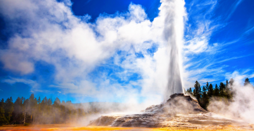 老忠实间歇泉因其始终如一的有规律地喷发而得名。目前大约每隔60至110分钟喷发一次,每次喷发持续四至五分钟,水柱高达40多米,蔚为壮观,而且从不间断。老忠实游客中心会提前摆出喷发时间表,可以先看好喷发时间,再放心去游览。