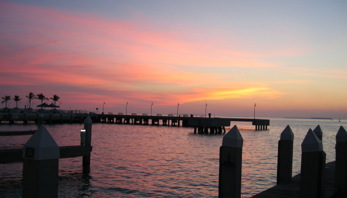 在加勒比海的深处,有一连串叫做佛罗里达群岛的珊瑚礁岛屿,仿佛散落在海面上的珍珠,绚烂夺目,而最南端的那一座就是西锁岛。西锁岛是美国本土最南端的小镇,因此被称为“日落故乡”。岛上常住人口不多,但是游客却常年络绎不绝。房屋以各式各样色彩明媚的民居为主,路两边整整齐齐地栽种著青翠欲滴的棕榈树,五彩缤纷的鲜花点缀其中,让人流连忘返。