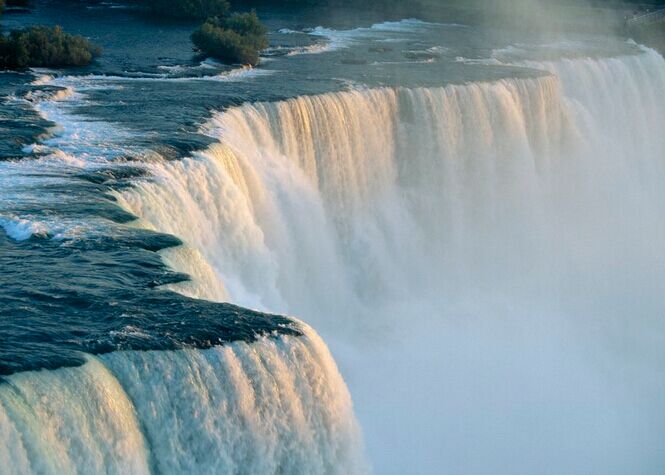尼亚加拉瀑布名字源自印第安语,意为“雷神之水”。是由三座位于北美洲五大湖区尼亚加拉河上瀑布的总称,与伊瓜苏瀑布、维多利亚瀑布并称为世界三大跨国瀑布。尼亚加拉瀑布以美丽的景色,巨大的水力发电能力和极具挑战性的环境保护工程而闻名于世。整个瀑布跨越加拿大的安大略省和美国的纽约州构成南部的尼亚加拉峡谷。其中,马蹄瀑布位于美国和加拿大的边境,美国瀑布全部位于美国境内并由山羊岛分隔开。小些的新娘面纱瀑布也在美国境内,由月神岛从美国瀑布隔开。