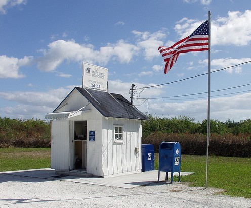 奥乔皮邮局被称之为美国最小的邮局,正如其名,这个只有2米多长宽,曾经用来存放工具和番茄的小房子,现在已经成为了一个麻雀虽小却五脏俱全的邮局,有1位工作人员,40个邮政信箱,每週有六天会派一位邮差,在170英里的路线裡服务那些住在郊外的300多位顾客。