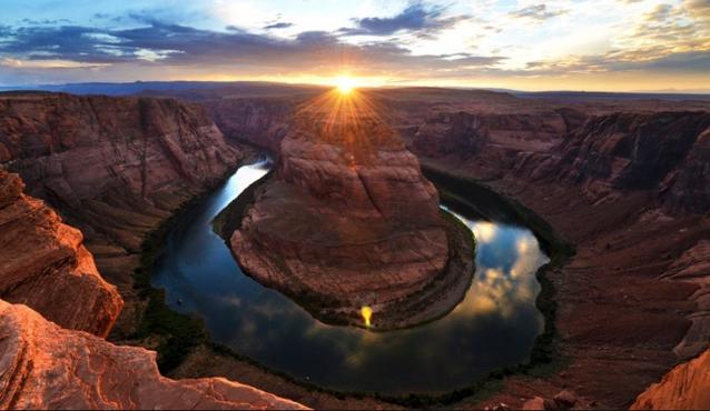 马蹄湾:磅礴大气的科罗拉多河在红色高崖下静静流淌,围绕着马蹄状岩石蜿蜒流淌出了一个U型弯道。在阳光的照射下,其独特的蓝绿色河水如绸缎般熠熠生辉。 站在峭壁边屏息静气俯瞰千丈石壁下的马蹄湾, 无不惊叹这碧水蓝天红岩勾勒出的惊心动魄之美。