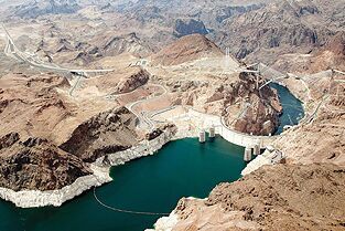 胡佛水坝: 位于内华达州及亚利桑那州的西北部交界处。它横跨科罗拉多河,是美国最大的水坝,也被称为沙漠之钻。水坝修建于美国经济大萧条时期,提供了多达五千个就业机会,是人类水利建设史上的里程碑,也开启了美国西部开发的辉煌史。只有选择去大峡谷西缘或大峡谷南缘的线路会停靠美国最雄伟的水利工程--胡佛水坝。