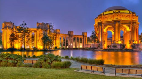 旧金山艺术宫始建于1915年,原本是为了巴拿马“太平洋万国博览会”所盖。会议结束后,艺术宫就渐渐荒废,最后变成了废墟空楼。直到1962年著名德裔建筑师梅贝克对其重新进行设计装修,才使其焕发出第二次的青春美丽。