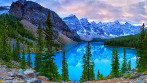 梦莲湖是加拿大班芙国家公园的一个冰川湖,坐落在著名的十峰谷中,湖底积满了富含矿物质的碎石,经年累月的沉积形成了变幻多姿的碧蓝色湖水,被公认为是世界上最有拍照价值的湖泊,湖面呈宝石蓝色,晶莹剔透,像是一颗璀璨的明珠。