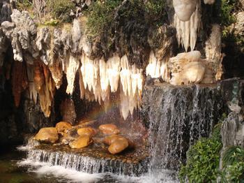 位于田纳西州观景峰内部的红宝石溶洞中,遍布石钟乳、石笋、流石等,抬头可见一条瀑布从天而降,随灯光变换着色彩,红色、黄色、蓝色、紫色等。