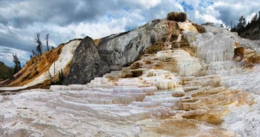 巨象石灰梯:在距今200万年前,130万年前以及64万年前在黄石均发生过巨大的火山爆发,至今这些地热力量依然影响着黄石现今丰富的地热景观,如温泉、间歇泉等,因此要说黄石国家公园拥有瑰丽的地质宝藏,光看这个壮观的「巨象石灰梯」(Mammoth Hot Spring Terrace),就知道是一点也不为过。因为石灰岩的碳酸钙化因素所形成的一整片白色的巨象石灰梯,可是从数千年前就开始每天不断有上千加仑的温泉从地底涌出,再顺着这些阶梯宣泄而下,温泉的热气氤氲环绕四周,形成氛围独特的迷你小瀑布美景。