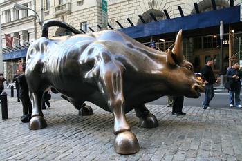 华尔街铜牛是美国华尔街的标志,是一座长5米,重6.3吨的铜牛塑像。华尔街铜牛是“力量和勇气”的象徵,喻义着只要铜牛在,股市就能永保“牛”市。