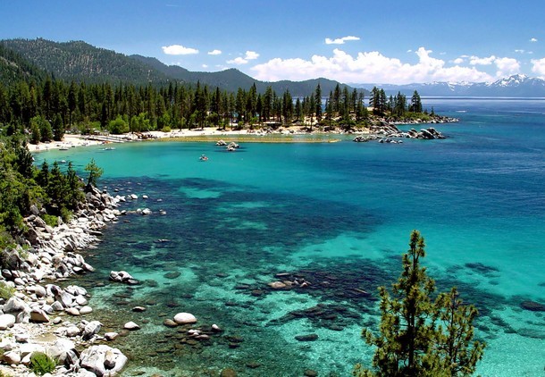 太浩湖是北美最大的高山湖泊,全美第二深的湖泊。湖水蔚蓝清澈,映照着旁边的山峦,有着独特绝美的自然风光,宛若神秘仙境。在它周围坐落着许多滑雪场,一年四季都吸引着众多游客。
