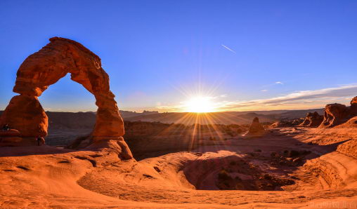 拱门国家公园:地底深处的巨大盐床和百万年岁月的侵蚀雕刻出拱门独特的地貌,这里有着全世界最集中的天然拱门。平衡石,三公石,羊石等怪石林立。赫赫有名的南窗和北窗两个拱门连成一线,彷佛是苍穹下一对晶莹剔透眼睛,在红褐色的石壁上分外闪耀。