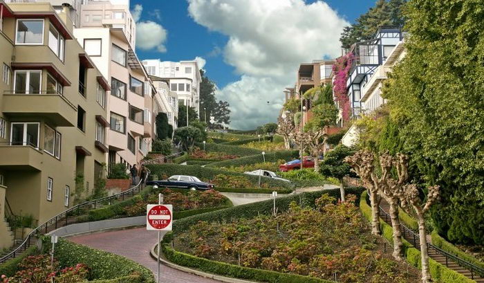 九曲花街被誉为“世界上最弯曲的街道”,是旧金山最受欢迎的地标之一。每年,数以百万计的游客步行或驾车经过它的八个急转弯。它被俄罗斯山的豪宅、精心修剪的景观和鲜花环绕,也是该市风景最优美的街道之一。从山顶俯瞰旧金山湾、海湾大桥和科伊特塔令人叹为观止的景色。