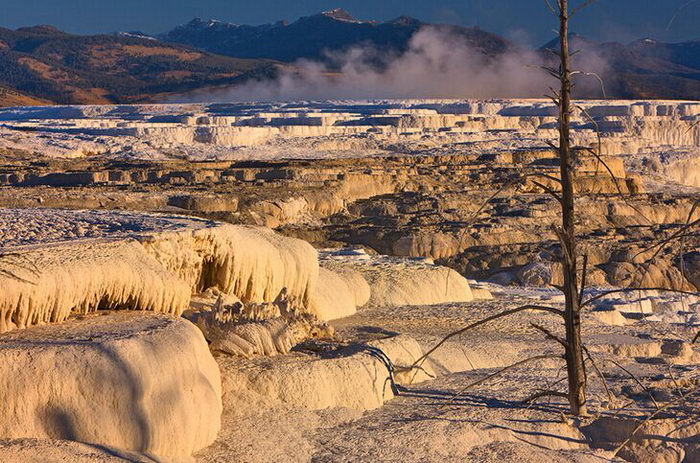 地处号称"美洲脊梁"的洛矶山脉,位于美国西部北洛矶山和中洛矶山之间的熔岩高原上。地热奇观是他的标志,一片由水与火锤炼而成的大地原始景观,园内自然景观分为五大区,即猛犸区、罗斯福区、峡谷区、间歇泉区和湖泊区,五个景区各具特色。超出了人类艺术所能表现的极限,是地球表面上最精彩、最壮观的美景。