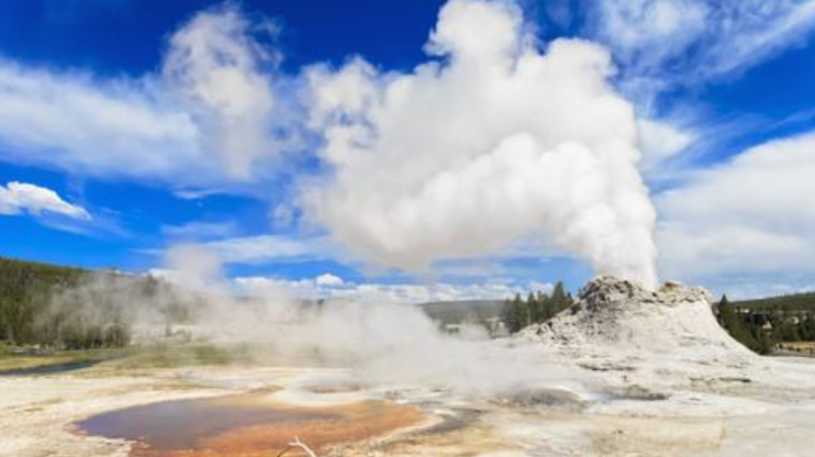 老忠实间歇泉因其始终如一的有规律地喷发而得名。目前大约每隔60至110分钟喷发一次,每次喷发持续四至五分钟,水柱高达40多米,蔚为壮观,而且从不间断。老忠实游客中心会提前摆出喷发时间表,可以先看好喷发时间,再放心去游览。