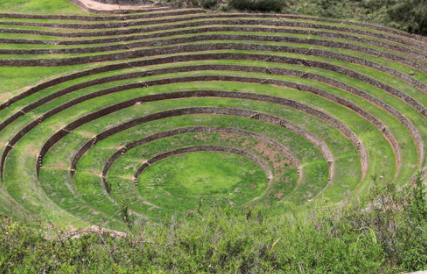 位于库斯科的莫瑞梯田充分展现出了印加人的智慧,梯田的最高处和最低处的温差可达 15 摄氏度,形成了 20 种天然的微气候,因此这里成为了一个“农业试验区”,人们移植了不同地区的土壤,在此测试种植不同作物的可行性。与梯田相配合,印加人还修建了许多灌溉渠,为山间水提供通道;以及许多挡土墙,在白天传递热量,在夜间则将热量锁在土地中。一个完备的农业系统使得他们能够充分利用大自然的资源,收获累累硕果。